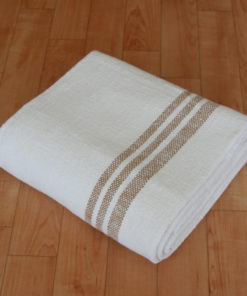 天然の茶綿を織りこんだ3本のライン模様が片側に入るデザインです。
